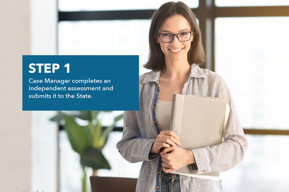 Care Manager completes an independent assessment and submits it to the state.
