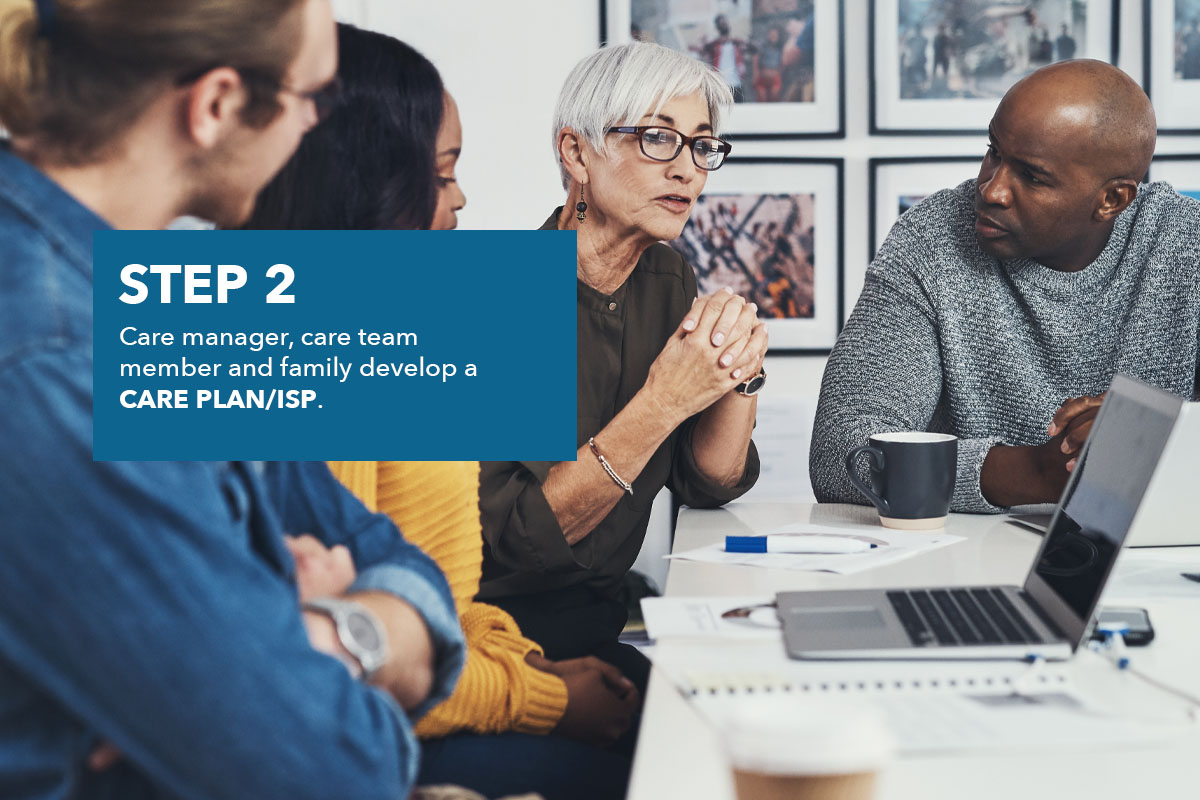 The Care Manager, care team member, and family develop a Care Plan/ISP.